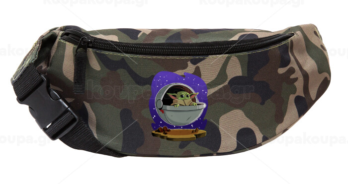 Baby Yoda mandalorian, Unisex τσαντάκι μέσης (μπανάνα) χρώματος παραλλαγή Jungle με 2 τσέπες