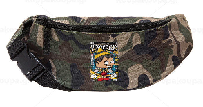 Pinocchio, Unisex τσαντάκι μέσης (μπανάνα) χρώματος παραλλαγή Jungle με 2 τσέπες