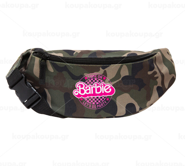 Come On Barbie Lets Go Party , Unisex τσαντάκι μέσης (μπανάνα) χρώματος παραλλαγή Jungle με 2 τσέπες