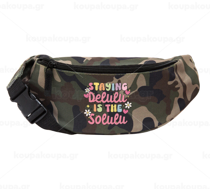 Delulu, Unisex τσαντάκι μέσης (μπανάνα) χρώματος παραλλαγή Jungle με 2 τσέπες