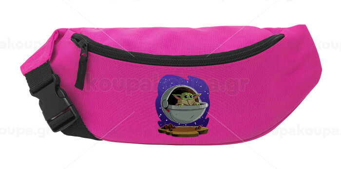 Baby Yoda mandalorian, Unisex τσαντάκι μέσης (μπανάνα) χρώματος ΡΟΖ με 2 τσέπες
