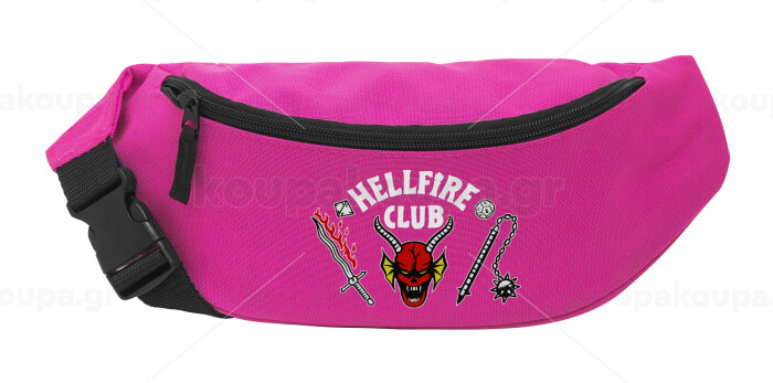 Hellfire CLub, Stranger Things, Unisex τσαντάκι μέσης (μπανάνα) χρώματος ΡΟΖ με 2 τσέπες