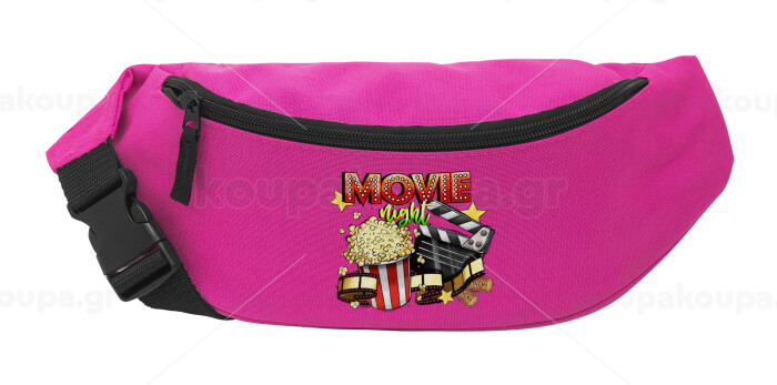 Movie night, Unisex τσαντάκι μέσης (μπανάνα) χρώματος ΡΟΖ με 2 τσέπες
