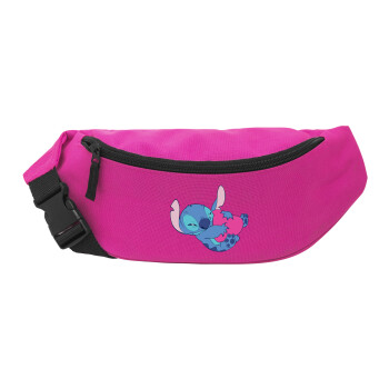 Lilo & Stitch hugs and hearts, Unisex τσαντάκι μέσης (μπανάνα) χρώματος ΡΟΖ με 2 τσέπες