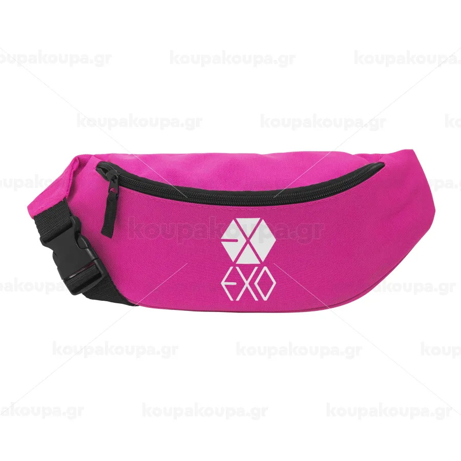 EXO Band korea, Unisex τσαντάκι μέσης (μπανάνα) χρώματος ΡΟΖ με 2 τσέπες