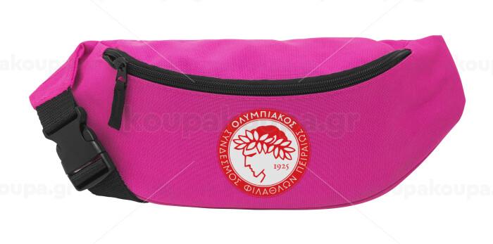 Ολυμπιακός, Unisex τσαντάκι μέσης (μπανάνα) χρώματος ΡΟΖ με 2 τσέπες