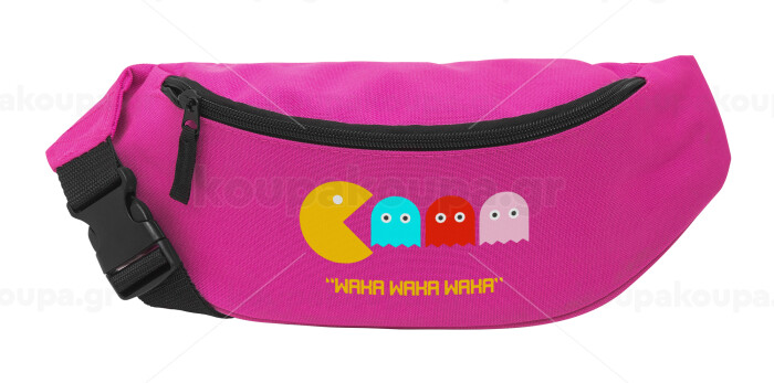 Pacman waka waka waka, Unisex τσαντάκι μέσης (μπανάνα) χρώματος ΡΟΖ με 2 τσέπες