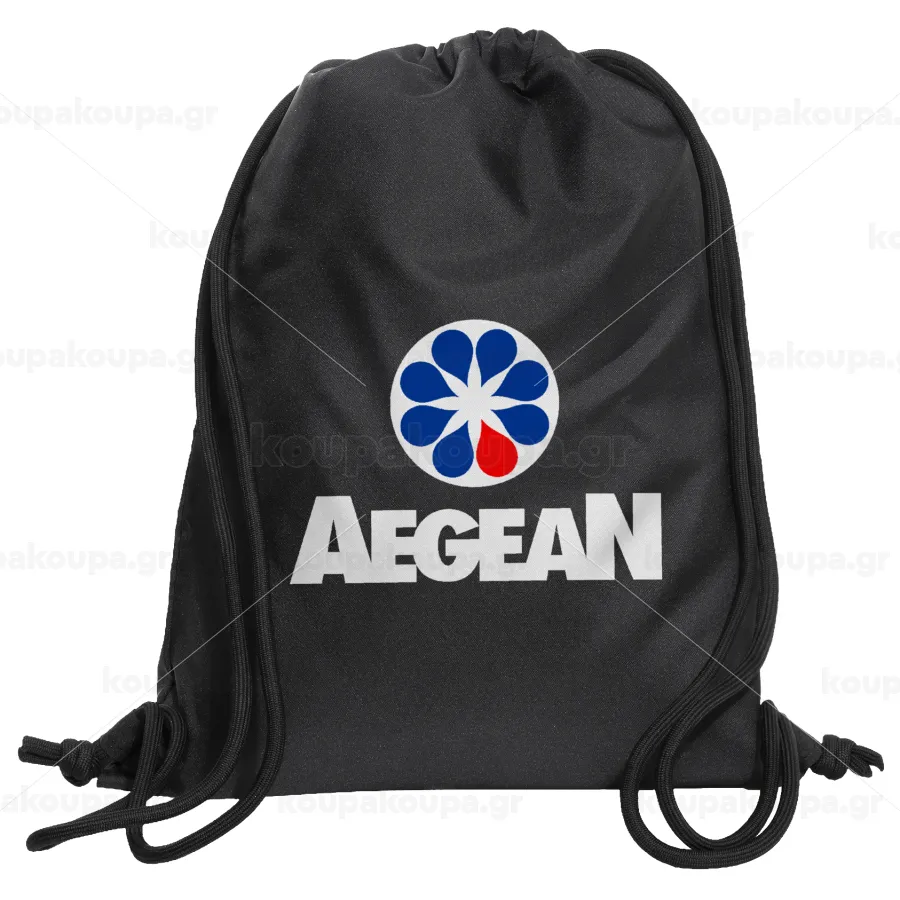 Πρατήριο καυσίμων AEGEAN, Τσάντα πλάτης πουγκί GYMBAG Μαύρη, με τσέπη (40x48cm) & χονδρά κορδόνια