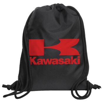 Kawasaki, Τσάντα πλάτης πουγκί GYMBAG Μαύρη, με τσέπη (40x48cm) & χονδρά κορδόνια