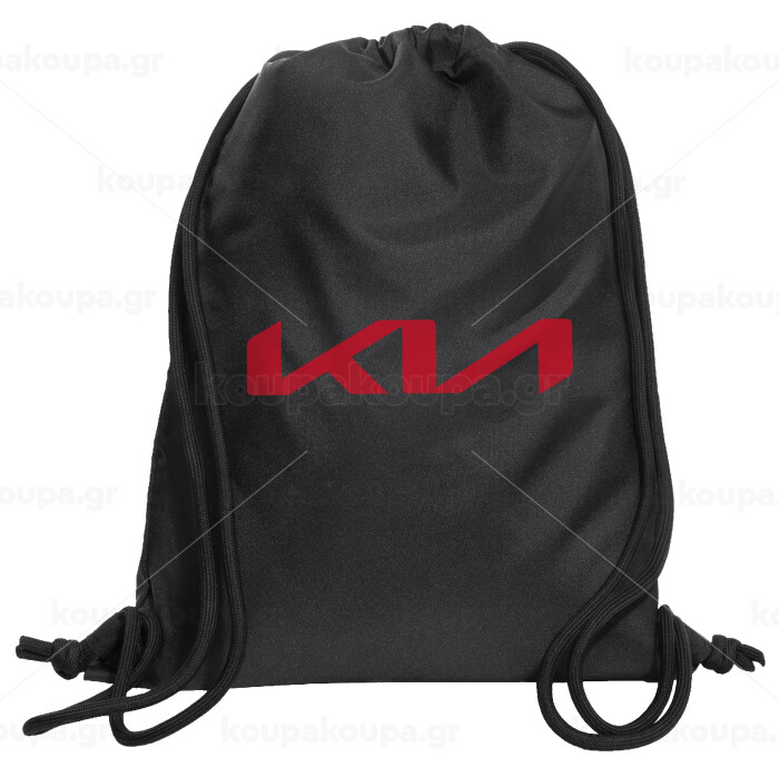 KIA, Τσάντα πλάτης πουγκί GYMBAG Μαύρη, με τσέπη (40x48cm) & χονδρά κορδόνια