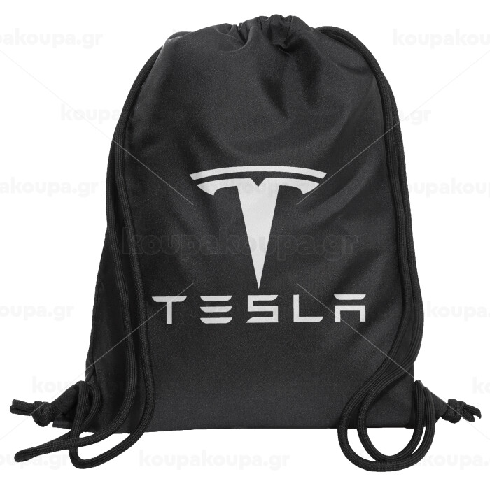 Tesla motors, Τσάντα πλάτης πουγκί GYMBAG Μαύρη, με τσέπη (40x48cm) & χονδρά κορδόνια