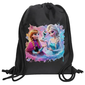 Έλσα & Άννα, Τσάντα πλάτης πουγκί GYMBAG Μαύρη, με τσέπη (40x48cm) & χονδρά κορδόνια