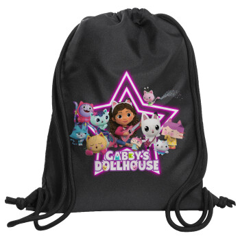 Gabby Dollhouse (ΤΟ ΚΟΥΚΛΟΣΠΙΤΟ ΤΗΣ ΓΚΑΜΠΙ), Τσάντα πλάτης πουγκί GYMBAG Μαύρη, με τσέπη (40x48cm) & χονδρά κορδόνια