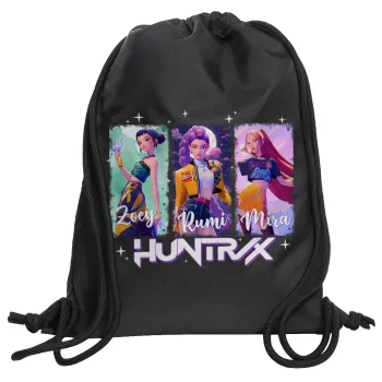 HUNTR/X K-pop girl group, Τσάντα πλάτης πουγκί GYMBAG Μαύρη, με τσέπη (40x48cm) & χονδρά κορδόνια
