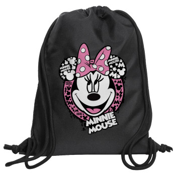 Minnie mouse, Τσάντα πλάτης πουγκί GYMBAG Μαύρη, με τσέπη (40x48cm) & χονδρά κορδόνια