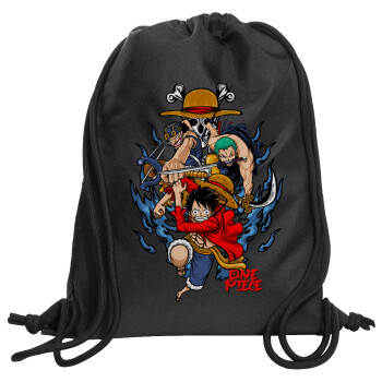 One Piece, Τσάντα πλάτης πουγκί GYMBAG Μαύρη, με τσέπη (40x48cm) & χονδρά κορδόνια