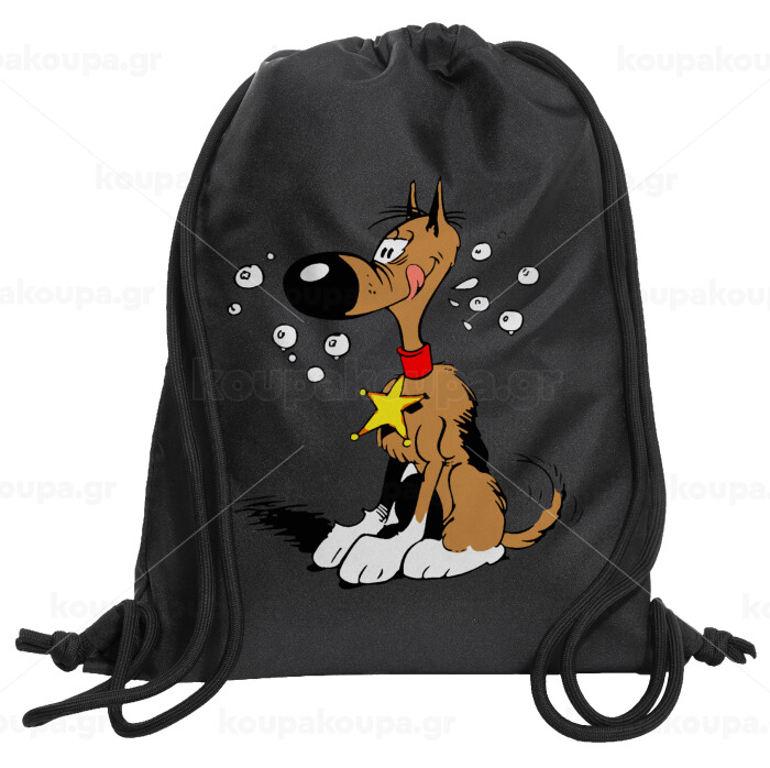 Rantanplan (Ρανταπλάν), Τσάντα πλάτης πουγκί GYMBAG Μαύρη, με τσέπη (40x48cm) & χονδρά κορδόνια