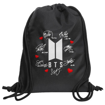 BTS signs, Τσάντα πλάτης πουγκί GYMBAG Μαύρη, με τσέπη (40x48cm) & χονδρά κορδόνια
