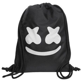 Marshmello, Τσάντα πλάτης πουγκί GYMBAG Μαύρη, με τσέπη (40x48cm) & χονδρά κορδόνια