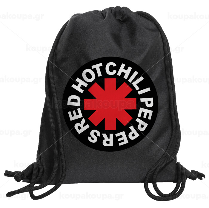 Red Hot Chili Peppers, Τσάντα πλάτης πουγκί GYMBAG Μαύρη, με τσέπη (40x48cm) & χονδρά κορδόνια