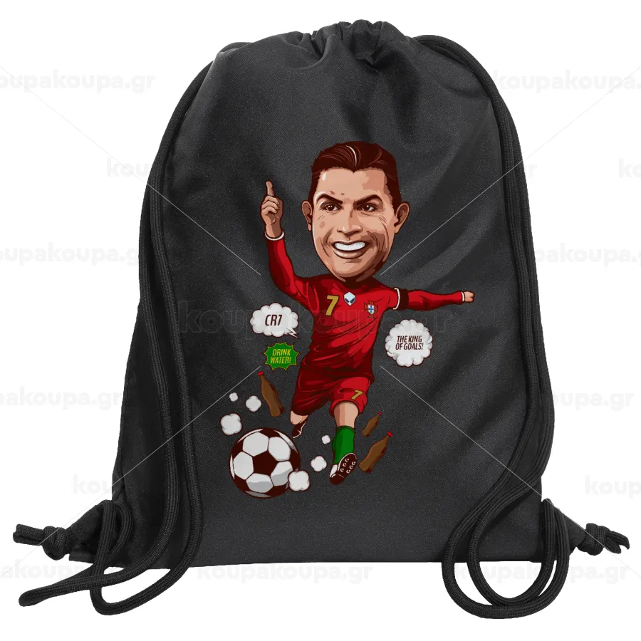 Cristiano Ronaldo, Τσάντα πλάτης πουγκί GYMBAG Μαύρη, με τσέπη (40x48cm) & χονδρά κορδόνια