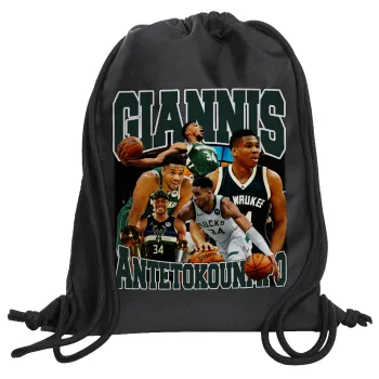 Giannis Antetokounmpo, Τσάντα πλάτης πουγκί GYMBAG Μαύρη, με τσέπη (40x48cm) & χονδρά κορδόνια