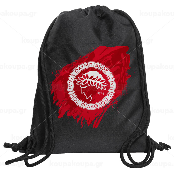 Olympiacos F.C., Τσάντα πλάτης πουγκί GYMBAG Μαύρη, με τσέπη (40x48cm) & χονδρά κορδόνια