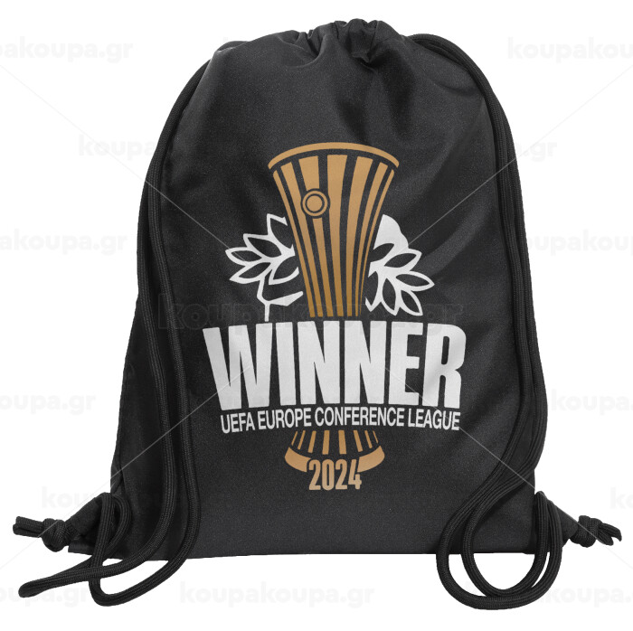 Europa Conference League WINNER, Τσάντα πλάτης πουγκί GYMBAG Μαύρη, με τσέπη (40x48cm) & χονδρά κορδόνια