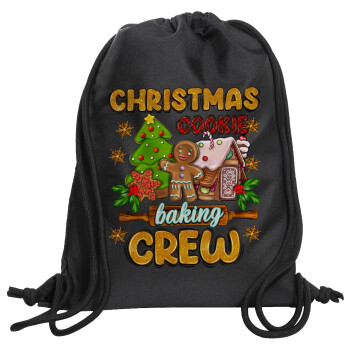 Christmas Cookie Baking Crew, Τσάντα πλάτης πουγκί GYMBAG Μαύρη, με τσέπη (40x48cm) & χονδρά κορδόνια
