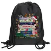 Xmas Classic movies, Τσάντα πλάτης πουγκί GYMBAG Μαύρη, με τσέπη (40x48cm) & χονδρά κορδόνια
