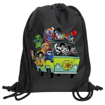 Stitch Halloween scooby car, Τσάντα πλάτης πουγκί GYMBAG Μαύρη, με τσέπη (40x48cm) & χονδρά κορδόνια