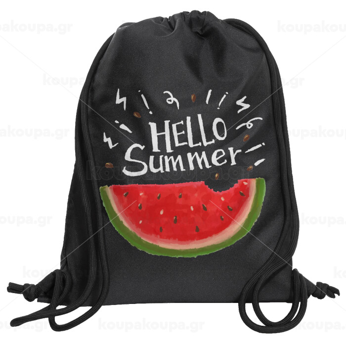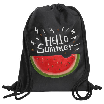 Summer Watermelon, Τσάντα πλάτης πουγκί GYMBAG Μαύρη, με τσέπη (40x48cm) & χονδρά κορδόνια