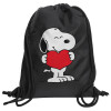 Snoopy takemy heart, Τσάντα πλάτης πουγκί GYMBAG Μαύρη, με τσέπη (40x48cm) & χονδρά κορδόνια