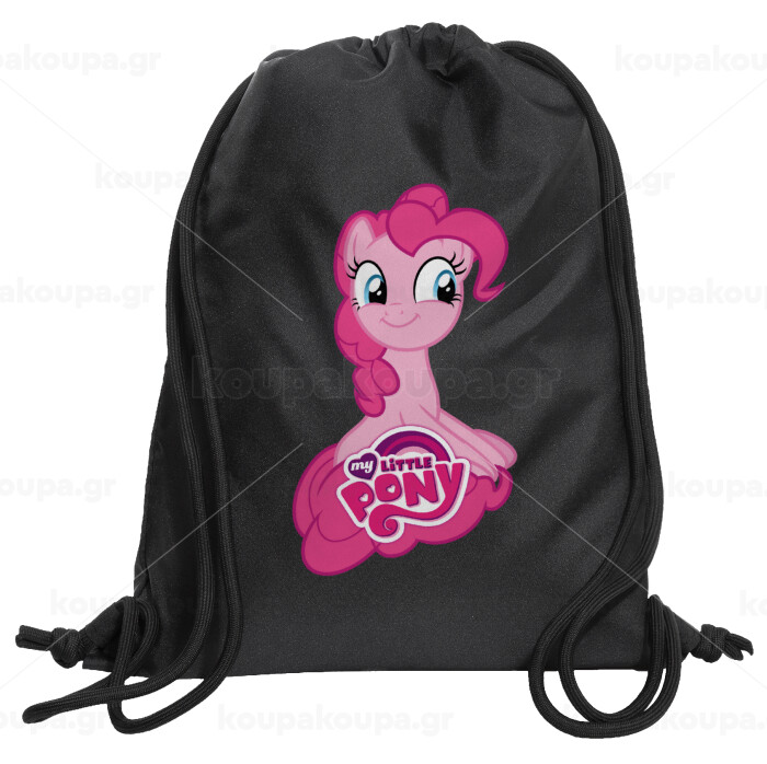 Μικρό μου Πόνυ, Τσάντα πλάτης πουγκί GYMBAG Μαύρη, με τσέπη (40x48cm) & χονδρά κορδόνια