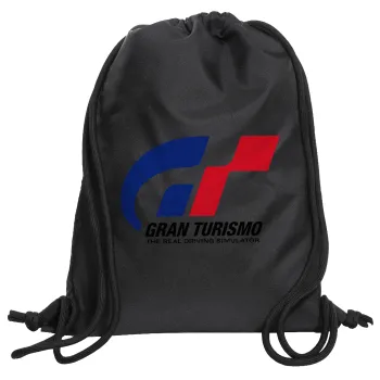 gran turismo, Τσάντα πλάτης πουγκί GYMBAG Μαύρη, με τσέπη (40x48cm) & χονδρά κορδόνια