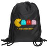 Pacman waka waka waka, Τσάντα πλάτης πουγκί GYMBAG Μαύρη, με τσέπη (40x48cm) & χονδρά κορδόνια