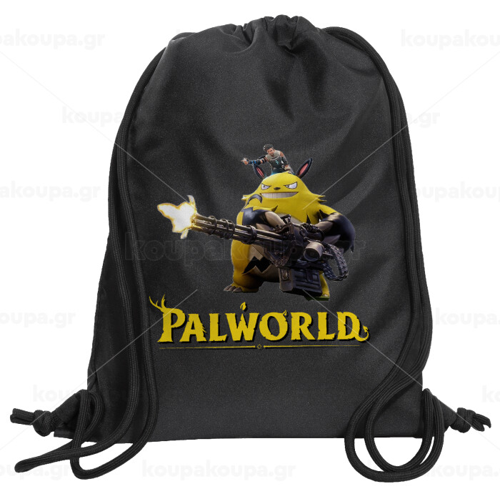 Palworld, Τσάντα πλάτης πουγκί GYMBAG Μαύρη, με τσέπη (40x48cm) & χονδρά κορδόνια