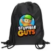 Stumble Guys, Τσάντα πλάτης πουγκί GYMBAG Μαύρη, με τσέπη (40x48cm) & χονδρά κορδόνια
