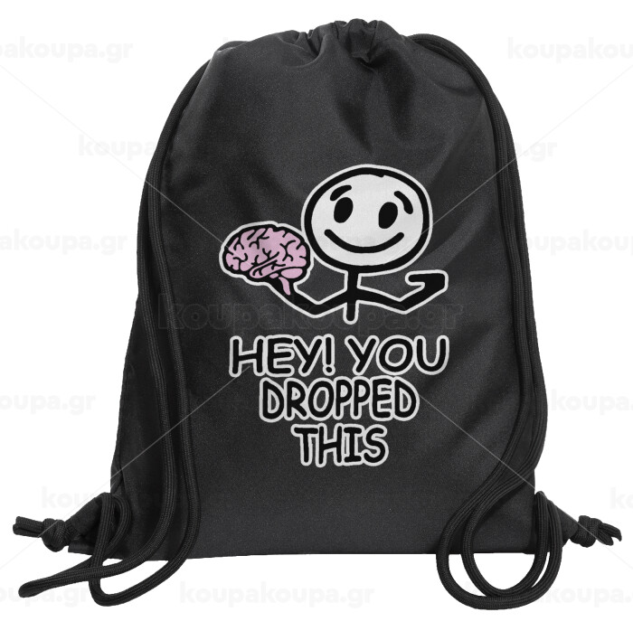 Hey! You dropped this, Τσάντα πλάτης πουγκί GYMBAG Μαύρη, με τσέπη (40x48cm) & χονδρά κορδόνια