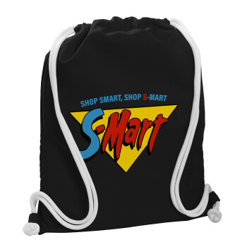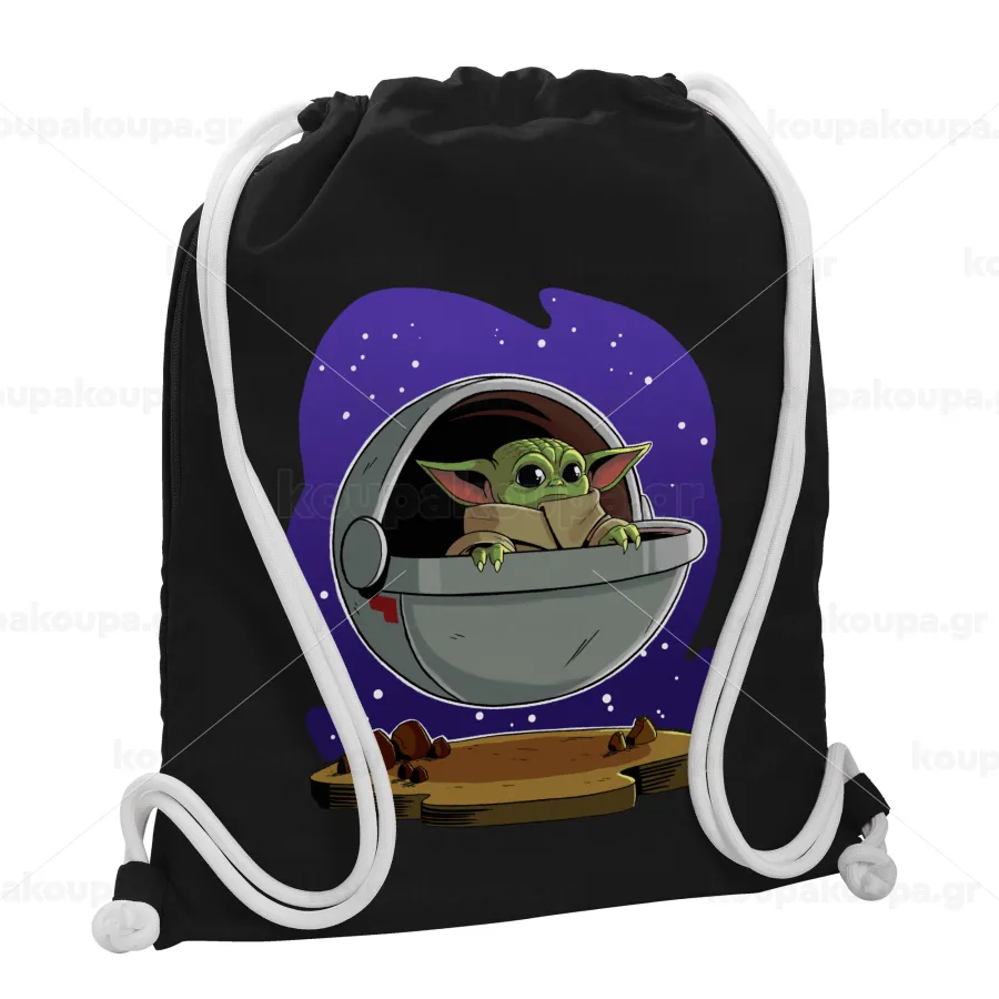 Baby Yoda mandalorian, Τσάντα πλάτης πουγκί GYMBAG Μαύρη, με τσέπη (40x48cm) & χονδρά λευκά κορδόνια