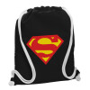 Superman, Τσάντα πλάτης πουγκί GYMBAG Μαύρη, με τσέπη (40x48cm) & χονδρά λευκά κορδόνια
