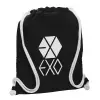 EXO Band korea, Τσάντα πλάτης πουγκί GYMBAG Μαύρη, με τσέπη (40x48cm) & χονδρά λευκά κορδόνια