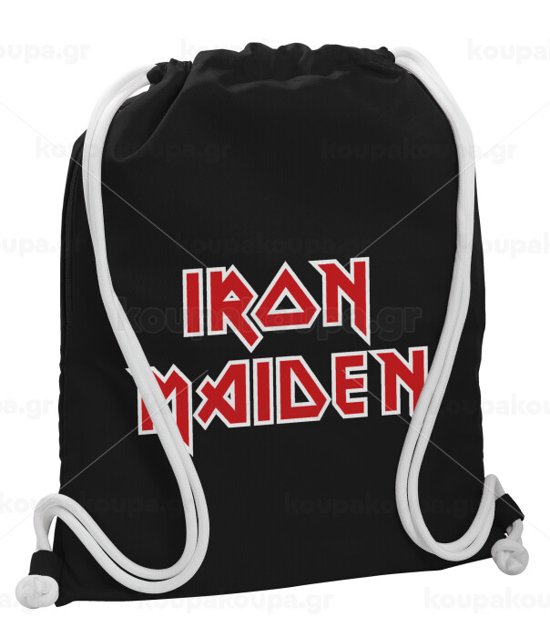 Iron maiden, Τσάντα πλάτης πουγκί GYMBAG Μαύρη, με τσέπη (40x48cm) & χονδρά λευκά κορδόνια
