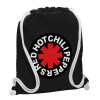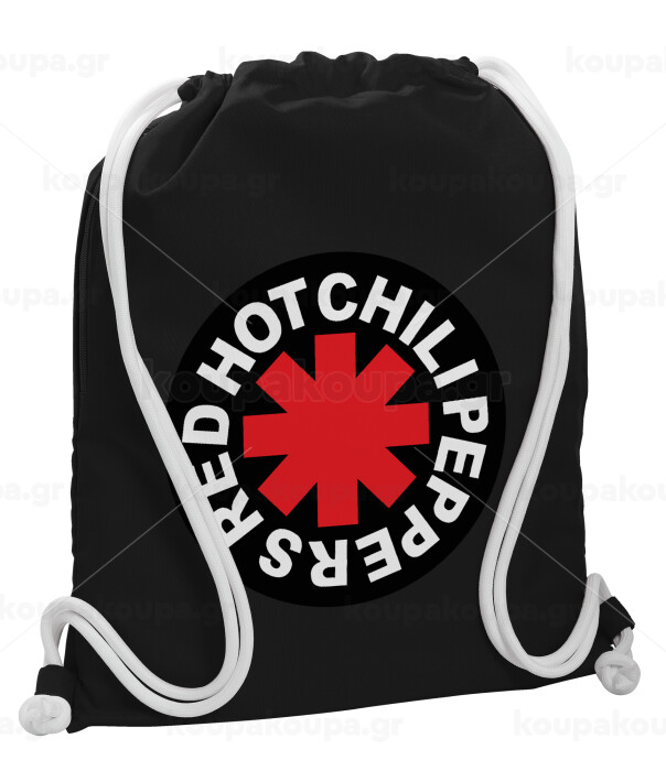 Red Hot Chili Peppers, Τσάντα πλάτης πουγκί GYMBAG Μαύρη, με τσέπη (40x48cm) & χονδρά λευκά κορδόνια
