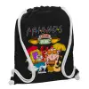 Τα φιλαράκια, Τσάντα πλάτης πουγκί GYMBAG Μαύρη, με τσέπη (40x48cm) & χονδρά λευκά κορδόνια