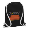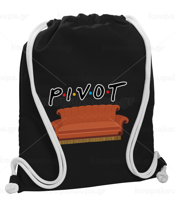 Friends Pivot, Τσάντα πλάτης πουγκί GYMBAG Μαύρη, με τσέπη (40x48cm) & χονδρά λευκά κορδόνια