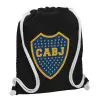 Club Atlético Boca Juniors, Τσάντα πλάτης πουγκί GYMBAG Μαύρη, με τσέπη (40x48cm) & χονδρά λευκά κορδόνια