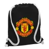 Manchester United F.C., Τσάντα πλάτης πουγκί GYMBAG Μαύρη, με τσέπη (40x48cm) & χονδρά λευκά κορδόνια