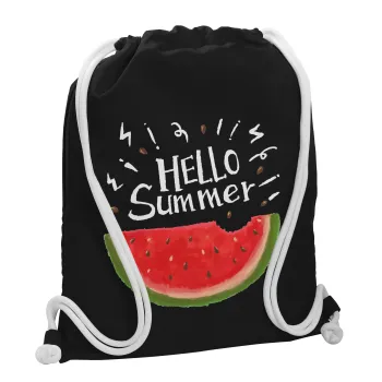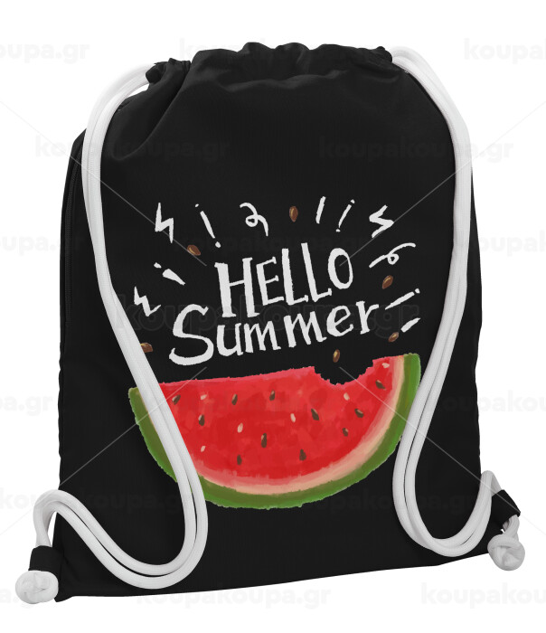 Summer Watermelon, Τσάντα πλάτης πουγκί GYMBAG Μαύρη, με τσέπη (40x48cm) & χονδρά λευκά κορδόνια