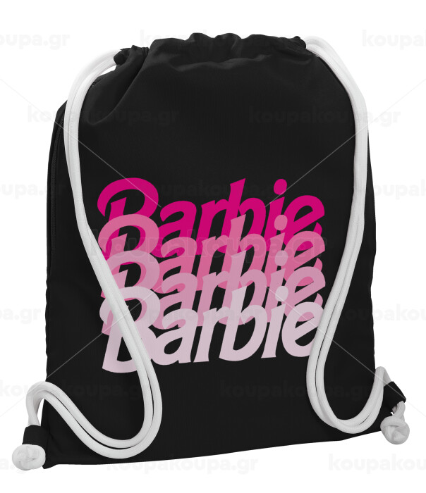 Barbie repeat, Τσάντα πλάτης πουγκί GYMBAG Μαύρη, με τσέπη (40x48cm) & χονδρά λευκά κορδόνια